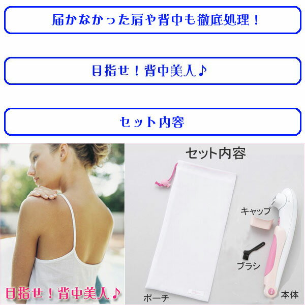 普段、なかなかお手入れができない「背中毛」も、 らく〜に届くロングシェーバー! 防滴タイプなので、バスルームでも使えます! 刃は、正面を向いており、 一般的なシェーバーに比べ、広範囲の除毛が可能です。
