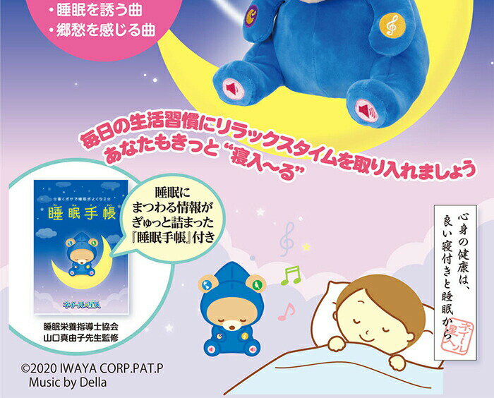サイズ/約幅19×奥行19×高さ30cmパッケージサイズ(約)230×H300×D170mm重さ/約270g素材/本体:ポリエステル、電池箱:ABS仕様/電源:単3形アルカリ乾電池3本使用(別売)、連続使用時間:約50時間付属品/睡眠手帳、取扱説明書対象年齢 14才以上---------------------------------■広告文責株式会社マツムラカメラ 076-242-1122区分:ぬいぐるみ発売元:イワヤ株式会社※使用感には個人差がございます。