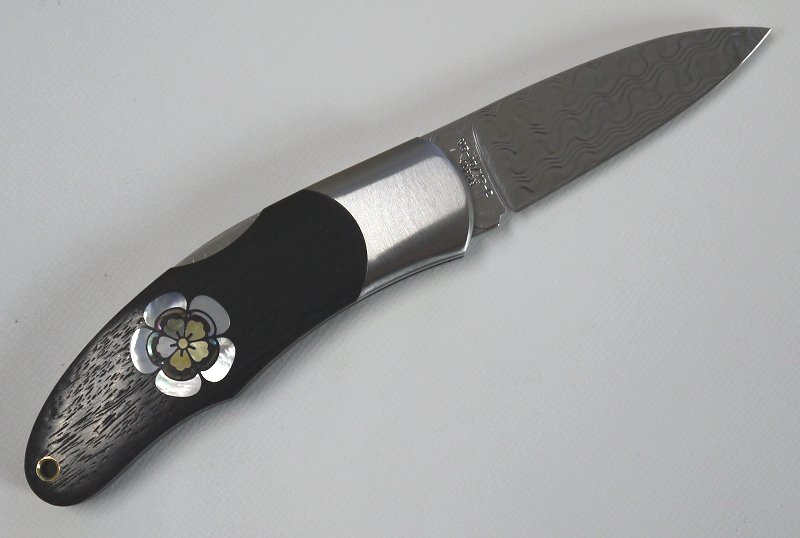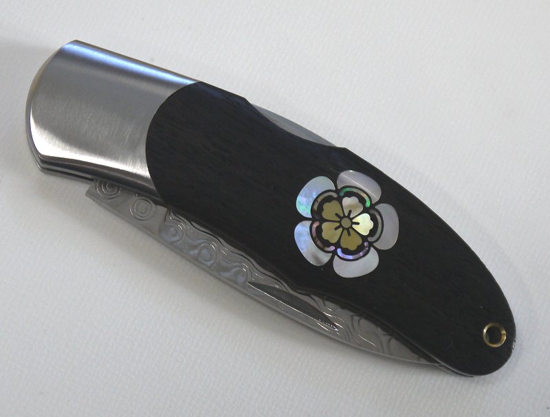 MOKI(モキ)MOKI×武将MK-207NN 信長フォールディングナイフコアレスダマスカス紫檀+あわび+黄蝶貝